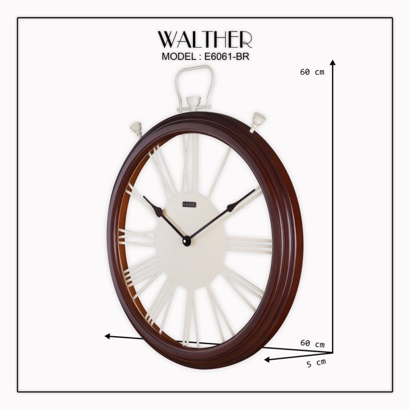 این ساعت دیواری با طراحی بسیار زیبا و مینیمال برای شما موجود شده است. همچنین باید این نکته را بیان کنیم که این ساعت در چهار رنگ یعنی قهوه ای تیره و روشن و رنگ کرم و خاکستری برای شما موجود شده است. در این بخش برای شما رنگ قهوه ای تیره را در دسترس قرار داده ایم. همچنین رنگ کرم این مدل هم از قسمت ساعت دیواری والتر 8071 رنگ کرم در دسترس است. اعداد رومی که به زیبایی طراحی شده است به همراه رگه های طبیعی چوب روی بدنه، این محصول را به یک ساعت دیواری مدرن تبدیل کرده است. سایز 80 این ساعت، باعث میشود که در فضاهای گسترده، این ساعت به مهمترین اکسسوری محیط تبدیل شود.