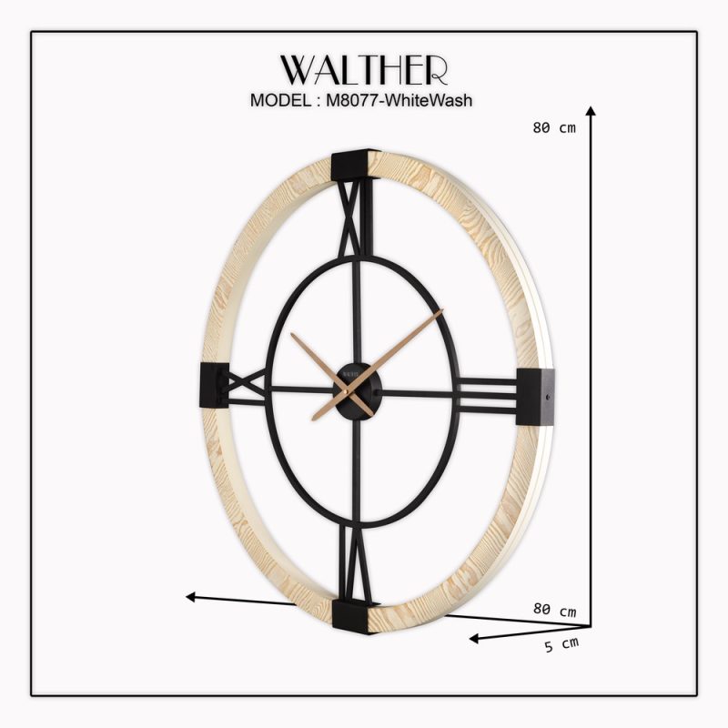 این ساعت دیواری با طراحی بسیار زیبا و مینیمال برای شما موجود شده است. همچنین باید این نکته را بیان کنیم که این ساعت در چهار رنگ یعنی قهوه ای تیره و روشن و رنگ کرم و خاکستری برای شما موجود شده است. در این بخش برای شما رنگ قهوه ای تیره را در دسترس قرار داده ایم. همچنین رنگ کرم این مدل هم از قسمت ساعت دیواری والتر 8071 رنگ کرم در دسترس است. اعداد رومی که به زیبایی طراحی شده است به همراه رگه های طبیعی چوب روی بدنه، این محصول را به یک ساعت دیواری مدرن تبدیل کرده است. سایز 80 این ساعت، باعث میشود که در فضاهای گسترده، این ساعت به مهمترین اکسسوری محیط تبدیل شود.